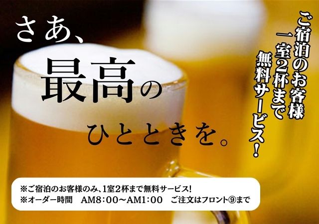 生ビールや樽ハイ、ソフトドリンクをお1人様1杯無料♪